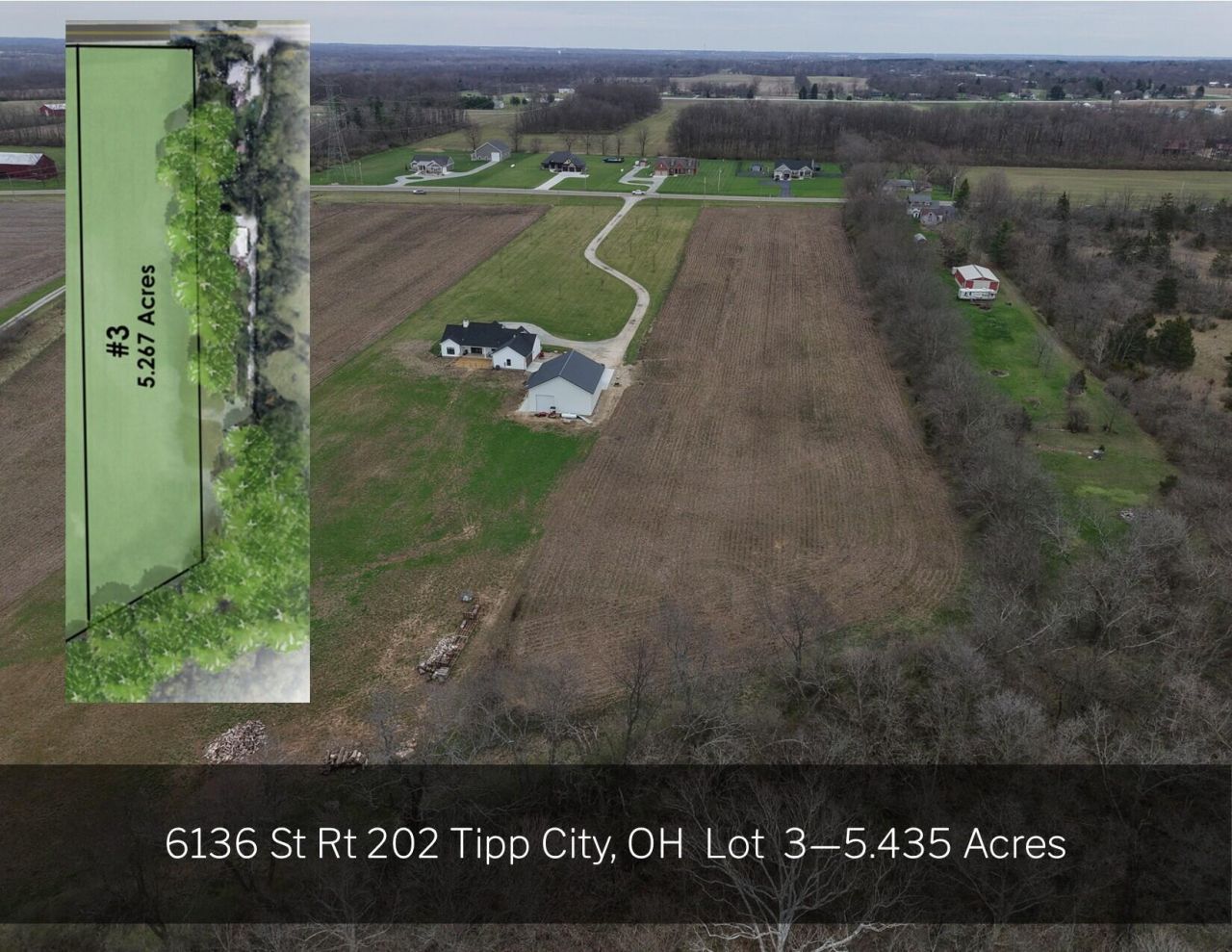 Nestled in the heart of Miami County, OH, Charleston West emerges as a serene country development that redefines rural living with a touch of elegance and boundless natural beauty. This coveted Lot #3, situated within the prestigious Bethel School District, offers an unrivaled opportunity for those seeking a harmonious blend of countryside tranquility and convenient access to urban amenities. Designed by the acclaimed DA Bowman Construction, known for their commitment to quality and bespoke design, Charleston West presents magnificent homes set on expansive rural lots of over 5 acres. Each home is a testament to luxurious living, surrounded by lush trees that offer privacy and a sense of seclusion. Lot #3 in Charleston West is not just a piece of land; it is a canvas awaiting your vision of the perfect custom-built home, exclusive to DA Bowman Construction. This is a unique chance to create your dream residence in a dream community, where peace meets prestige, and where every detail is tailored to elevate your living experience. Discover the blend of rural charm and modern luxury with Charleston West and embrace the lifestyle youve always desired. Lots are exclusive to builder DA Bowman Construction. They specialize in crafting exceptional custom homes, designed exclusively to reflect your unique vision. Quality craftsmanship is their hallmark, using only the finest materials and skilled artisans for superior durability. With end-to-end support, they guide you through the entire process, making it seamless and stress-free. Transparent budgets, local expertise, and a customer-centric approach define their service. Explore our award-winning portfolio, showcasing their passion for unique design and attention to detail. Your dream home is just a consultation away. Let D.A. Bowman Construction build the home of your dreams! Your dream home starts here.