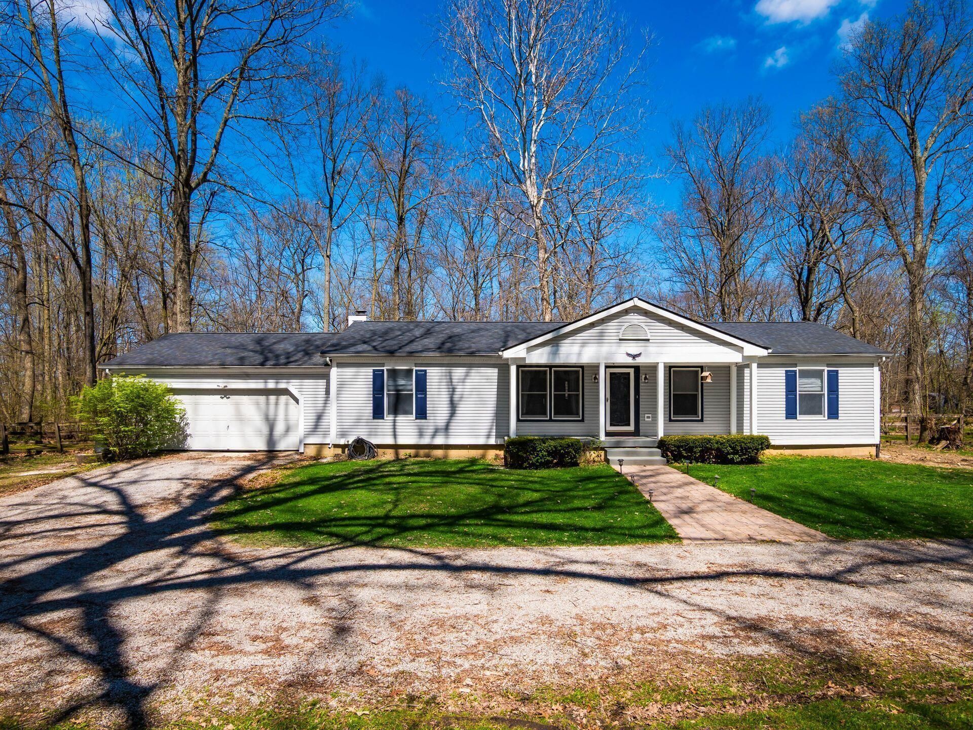 Amazing ranch home situated on 4 acres in the middle of beautiful woods with plenty of mature trees. Three bedrooms. Living room, dining room Family room has bamboo hardwood from 2022, and a woodburning fireplace. Updated kitchen cabinets and granite countertop. Master bedroom bathroom updated 2024. New roof in 2023. Stamped concrete walkway and a concrete patio for outdoor dining.